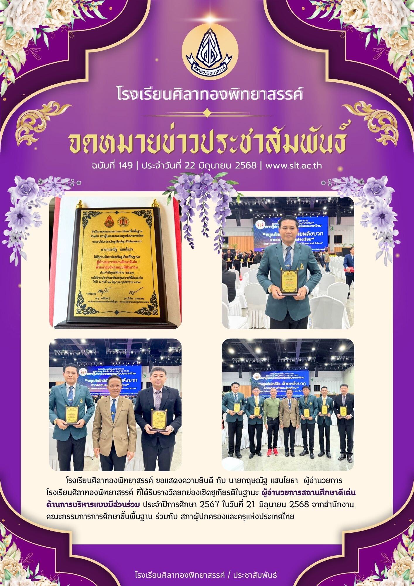 นายกฤษณัฐ แสนโยธา ผู้อำนวยการโรงเรียนรับรางวัลผู้บริหารดีเด่น