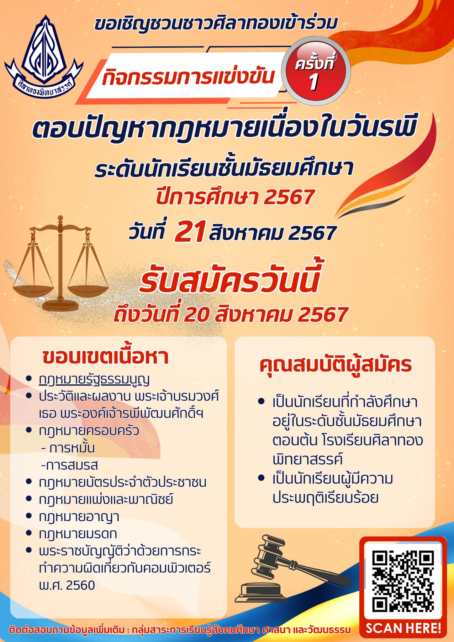 ข่าวประชาสัมพันธ์ กิจกรรมการแข่งขันตอบปัญหากฎหมาย เนื่องในวัน วันที่ 21 สิงหาคม 2567