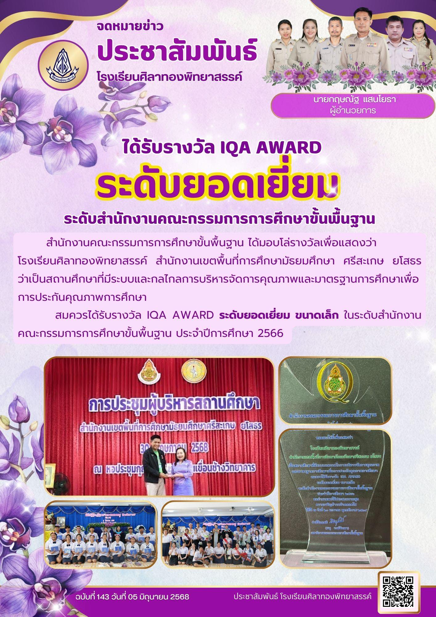 โรงเรียนศิลาทองพิทยาสรรค์ ได้รับรางวัล IQA Ward ระดับยอดเยี่ยม